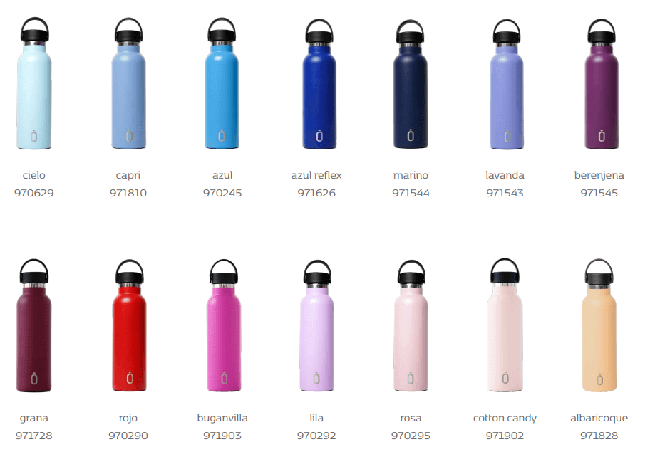 Nuestra botella con recubrimiento cerámico y tapón roscado que mantiene tus bebidas frías durante 24 horas y calientes durante 12 para que te la lleves donde quieras. Elige la tuya entre 26 colores diferentes.